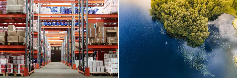 这些照片展示了基本原理:数据湖没有像自然湖那样被强加的结构,而数据仓库则是为特定用途组织数据。